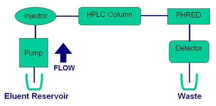 There are important advantages of the PHRED™ method over the Rybak method. The PHRED™ method does not require a second pump for the reagent delivery, does not require a thermostated reactor coil with its oven, and does not require a corrosive and odoriferous chemical reagent (bleach). PHRED™ is a compact unit connected between the outlet of a HPLC column and the detector (Fig. 2). It is widely used in many applications such as the analysis of aflatoxins (3,4).