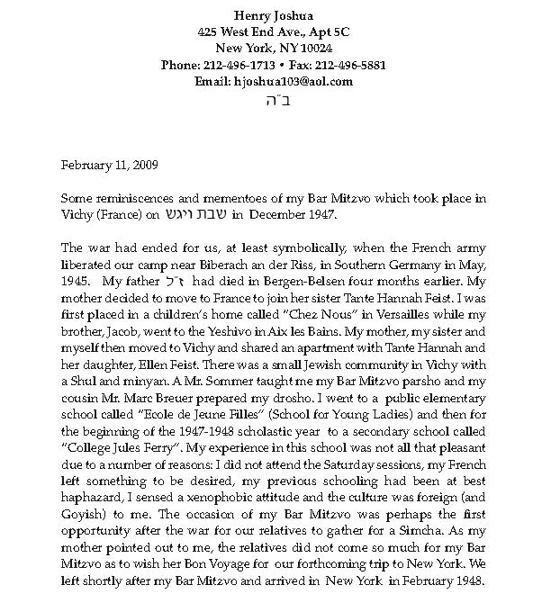 Memories of My Bar Mitzva