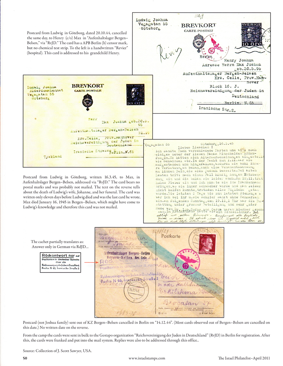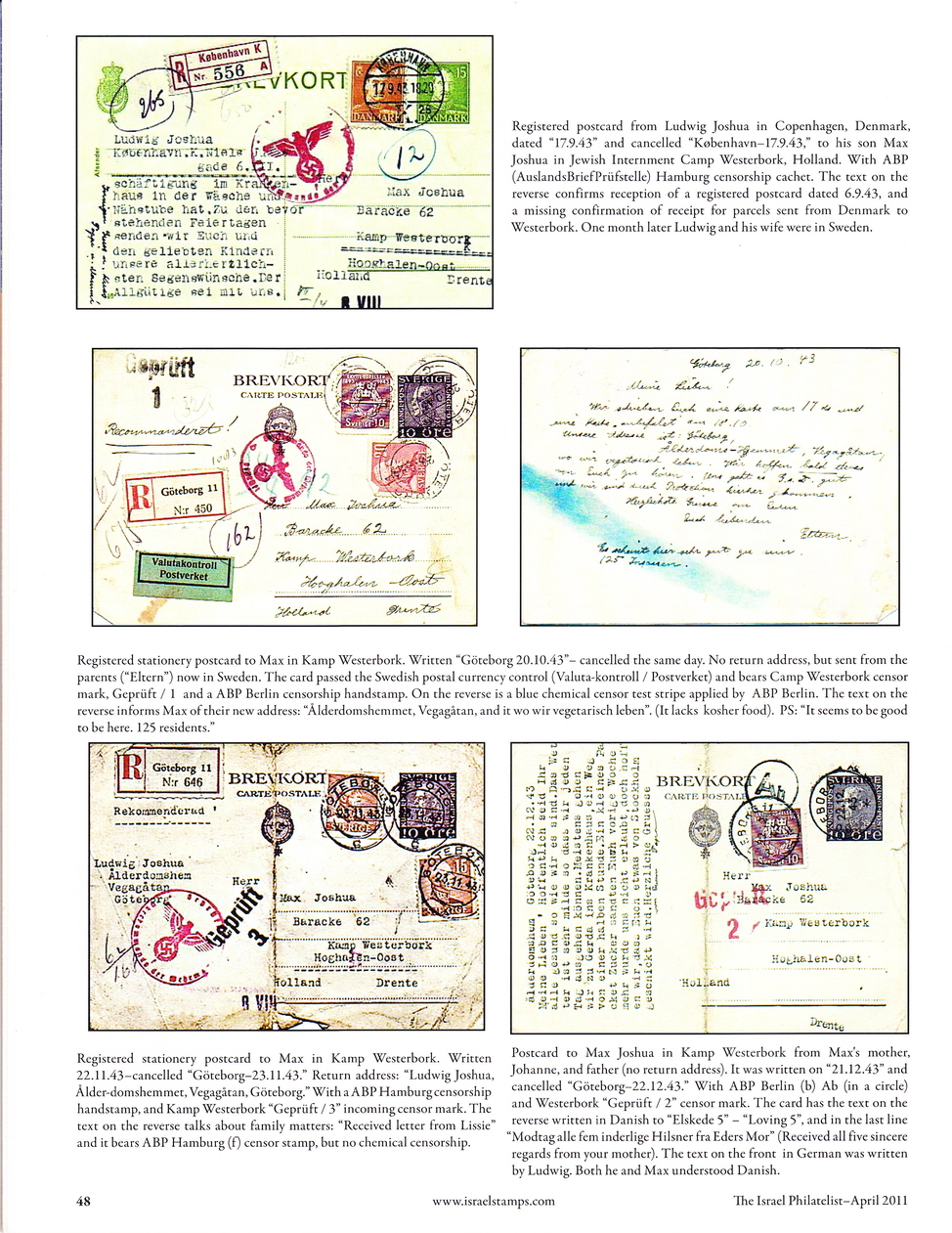 “The Fate of the Joshua Family in World War II” was written by Erik Lordahl and was first published in early 2011 in Norwegian War and post Journal No. 1/2011, pages 5-19, of which he is the editor. With his permission it was also published in the April 2011 issue of “the Israel Philatelist”, pages 46-51, using a slightly different layout. This copy of the Israel Philatelist publication also shows a photo of a Dutch National memorial at Westerbork. The memorial was designed by Ralph Prins who happens to be my second cousin once removed. His grandfather, Eliezer Liepman Philip Prins, was my great grandfather.