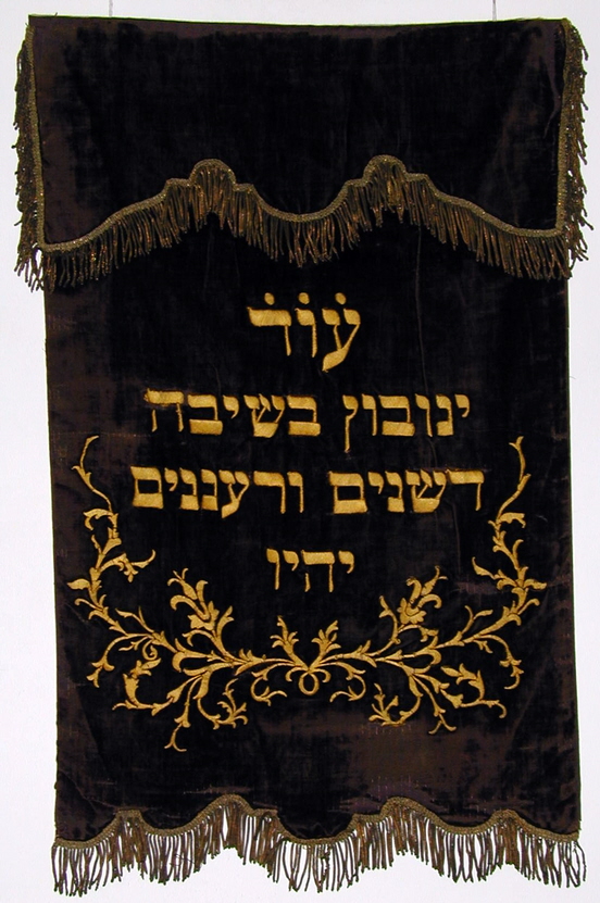 In February 16, 2012 my brother had his 80th birthday. For this occasion I sent him a photo of an embroidered Peroches which was part of a painted Shtender (lectern) made for and given to our great grandfather Herz Joshua for his 80th birthday. The embroidery consists of verse 15 in Tehilim (Psalms) 92 (Mizmor Shir Leyom Hashabos) which translated to: